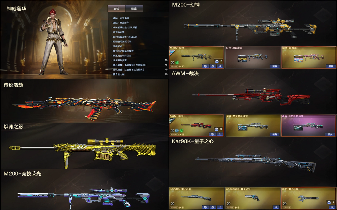 传说浩劫4防神威莲华⭐幻神权周瑜+量子套+裁决量子苍灵⭐白虎三件套QBZ蔷薇3副炽芒⭐炼狱死亡5烈龙