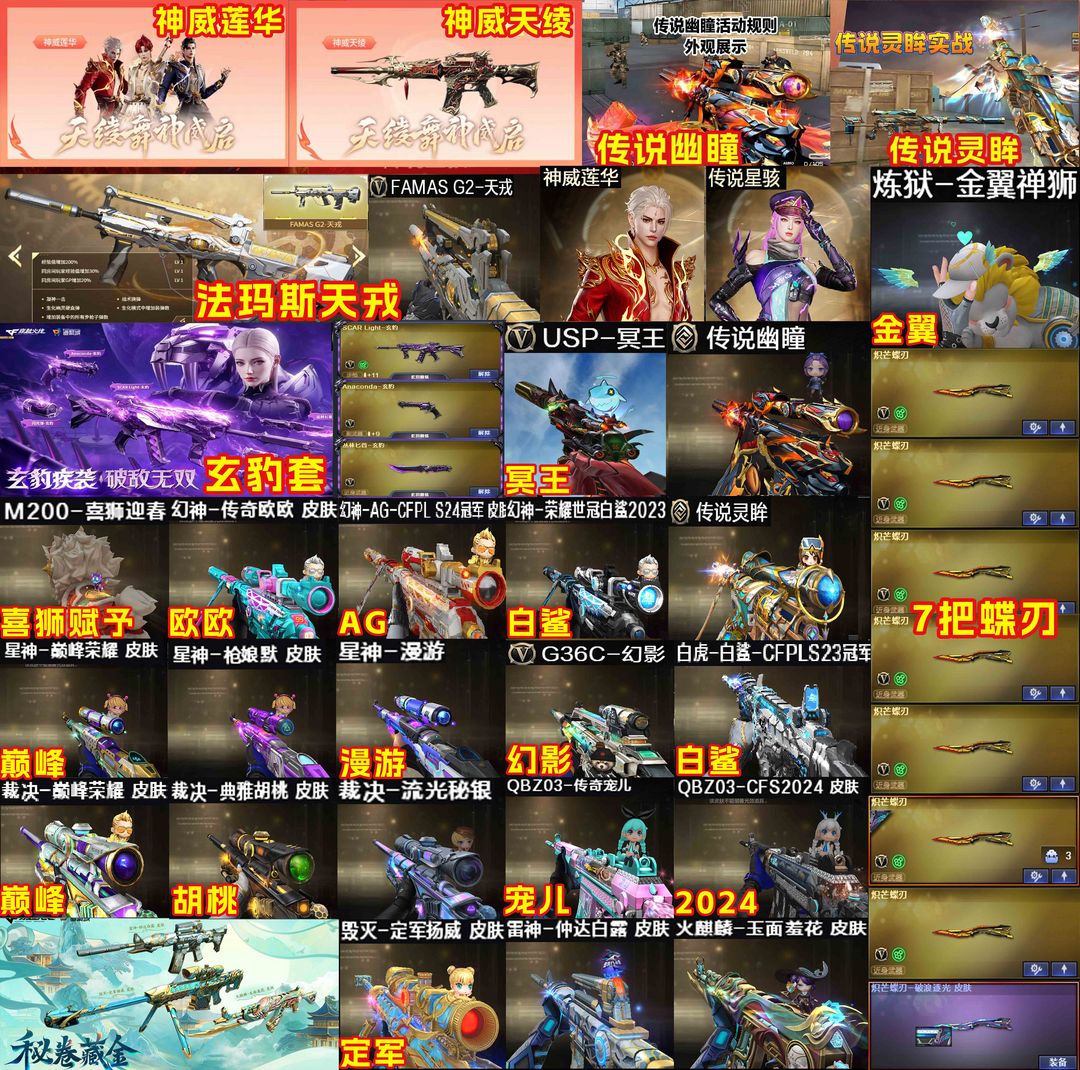 限制: 租号6次及以上 | 撤单率<50%才可租用此帐号装备描述:【装备道具】:神威莲华/神威天绫/炼狱金翼禅狮/7把蝶刃❤传说幽瞳/传说灵眸/传说星骇❤幻神-动感闪耀/幻神-AG-CFPL S24冠军/幻神-欧欧/幻神-荣耀世冠白鲨2023/幻神-CFS2022/幻神-星耀/星神-巅峰荣耀 皮肤/星神-枪娘默/星神-漫游/毁灭-定军扬威/裁决-叶芒苍灵/裁决-典雅胡桃/裁决-流光秘银/裁决-巅峰荣耀/火麒麟-玉面羞花/雷神-仲达白露/雷神-荣耀之魄/金色蔷薇-破浪逐光/白虎-白鲨冠军/QBZ-CFS2024/QBZ-AGS19冠军/QBZ-荣耀世冠白鲨/QBZ-冠军之薇/QBZ-枪娘阿敏/QBZ-传奇宠儿/炽芒蝶刃-破浪逐光❤FAMAS G2-天戎/G36C-幻影/QBZ191-银翼游侠/USP-冥王2把/白虎-电玩蓝兔/王者白虎/星神-长生圣莲/王者凌虎/王者霜心/王者破空枪刃/柯尔特-无冕之王/柯尔特-冠军之特/USP-雷暴❤幻神音效卡/星神音效卡/金色蔷薇音效卡/天罚音效卡/玄武音效卡/雷神音效卡/黑骑士音效卡毁灭音效卡/裁决音效卡/炼狱-百战金芒❤堕天神套装/云龙套装/玄豹套装/电竞教官-云悠悠/月兔特工/雾萌萌/晴雅/隐/SCAR玄豹