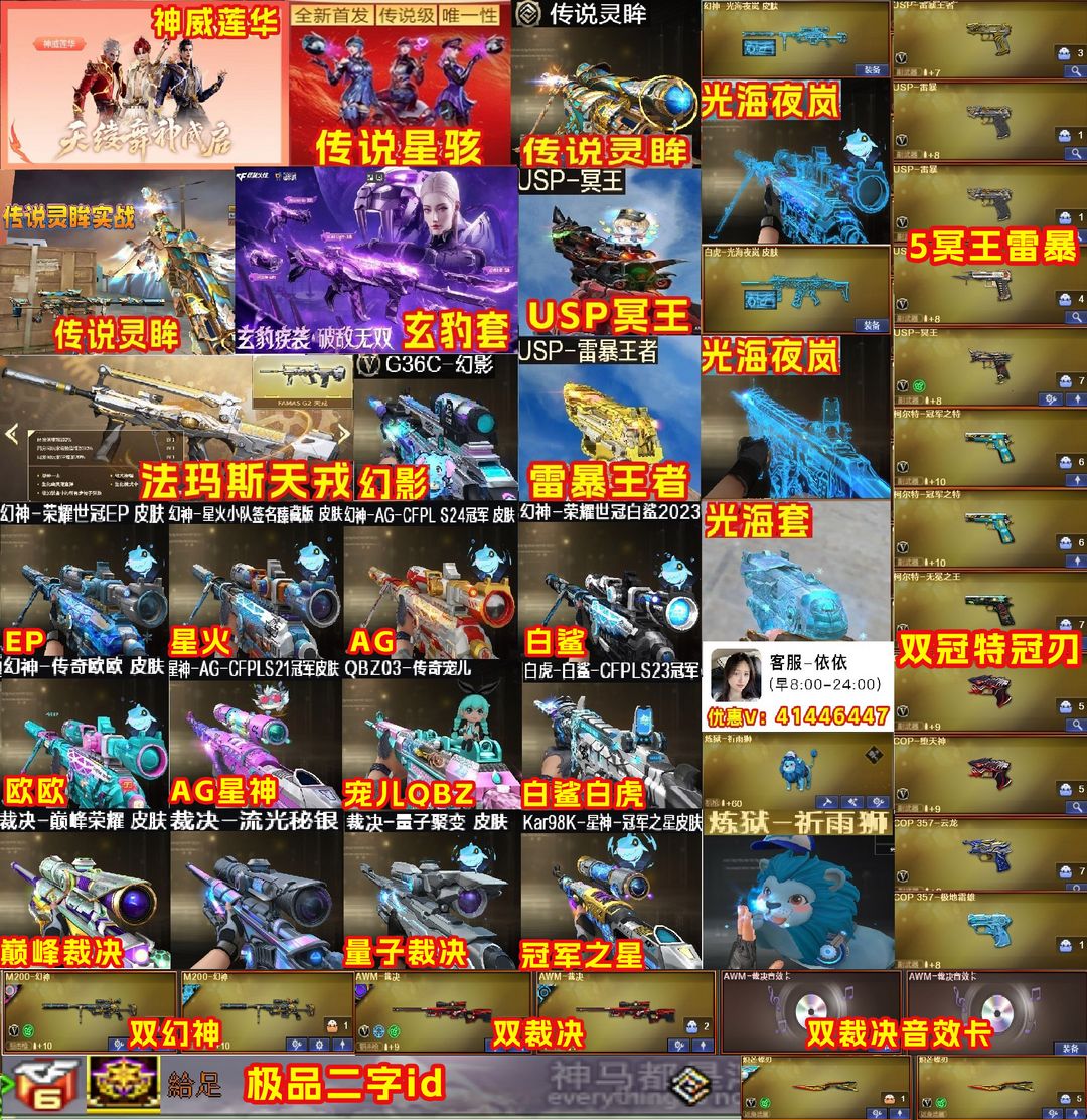 限制: 租号5次及以上 | 撤单率<50%才可租用此帐号装备描述:【装备道具】:传说星骇/传说圣谕/传说光耀/传说灵眸★幻神-光海夜岚/COP极地霜雄/幻神-荣耀世冠EP/幻神-电流骇客/幻神-星火小队签名臻藏版/幻神-AG-CFPL S24冠军 皮肤/幻神-黄忠/幻神-荣耀世冠白鲨/幻神-荣耀世冠白鲨2023/幻神-N9-2022MVP/幻神-宠儿-2021MVP/幻神-冠军之幻/幻神-周瑜/幻神-AG-CFPLS17冠军/幻神-青鹤/幻神-CFS2022/星神-冠军之星/星神-AG-CFPLS21冠军皮肤/星神-枪娘默/星神-璀璨/荣耀之魄/雷神-宠儿/幻影-破浪逐光/白虎-白鲨-S23冠军/白虎-冠军之虎/白虎-暗星/白虎-AG-CFPLS20冠军/QBZ-AGS19冠军/QBZ-荣耀世冠白鲨/QBZ03-传奇宠儿/炽芒蝶刃-荣耀世冠白鲨/CAR Light-玄豹/FAMAS G2-天戎/QBZ191-银翼游侠/G36C-幻影★VSK-94-金蚀/王者风神/USP-冥王/柯尔特-冠军之特/柯尔特电竞★堕天神套装/竞技荣光套装/玄豹套装★迷迭香/雨棠/鹰/关小雨/枪娘樱/隼/雨墨/隐/玄豹/白虎-茸茸松狮/异变清道夫-蛇影双骄/MK5-炽火炎龙/
