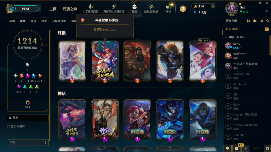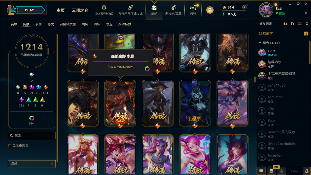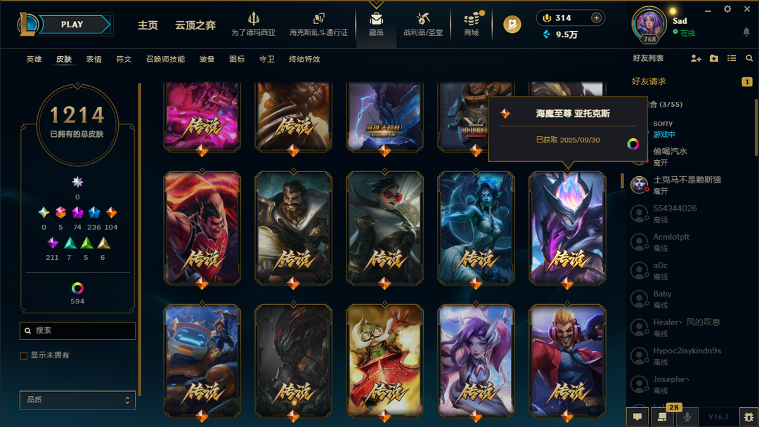 联盟二区1321皮+1128炫137神话⚡️新双城之战全套斗魂萨米拉海魔剑魔西部永恩⚡️云顶7神话