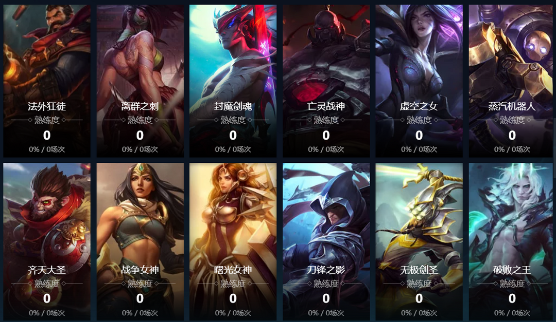 虚空之女;星籁歌姬;疾风剑豪;戏命师;祖安花火;暴走萝莉;影流之主;皮城执法官;暗裔剑魔;沙漠皇帝;
