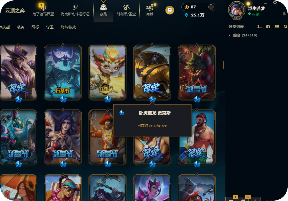 2000皮肤殿堂传奇妖姬灵魂守卫赵云吕布卧虎藏龙神龙瞎亚索神王套美猴王DRX剑魔卧虎藏龙青花瓷冰雪套