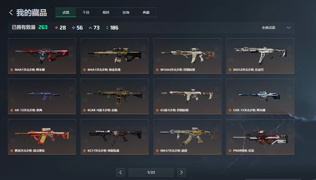 皮肤号 ✅263枪皮⚡信条⚡午夜邮差⚡蚀金玫瑰⚡露娜天际线⚡战斗部门6+6⚡通行证已开⚡