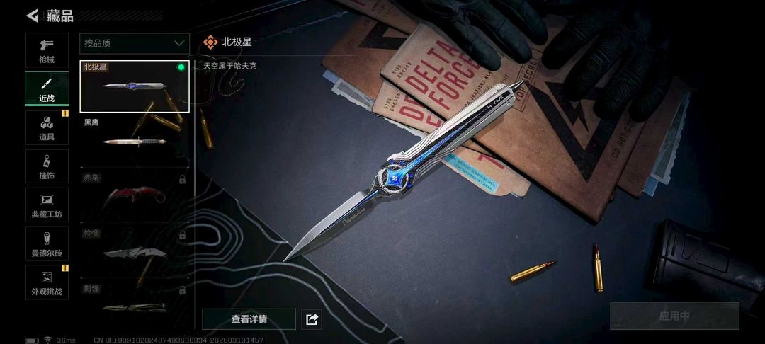 装备描述:一刀五金枪皮一典藏北极星午夜邮