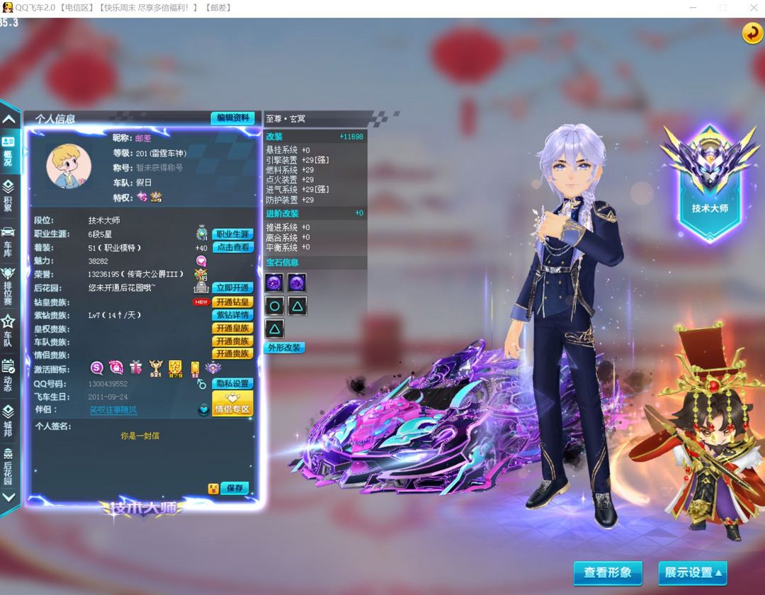 限制: 撤单率<40%才可租用此帐号装备描述:最强227年限S蛇车至尊-玄冥满改双四 + X次元马年限定机甲皮肤玄武·守岁-暖炉娘(带超级喷) 永久S炼狱使者 满改双四T2紫焰战神,满改双四雷诺,满改双四穿梭者-车王纪念版,满改双四璀璨之星…… 另有19辆永久A等 强化+10竞速神宠 小孙权 强化+10竞速宠物 白金神兽 男女服饰都几百页,男装有悬浮套,千古一帝套装等…… 魅力3.8W,贵族V9,钻七,技术大师段位玩家可以自由排位,极品二字id:邮差,如有需要可把旁边小号点了