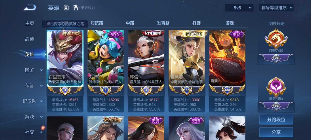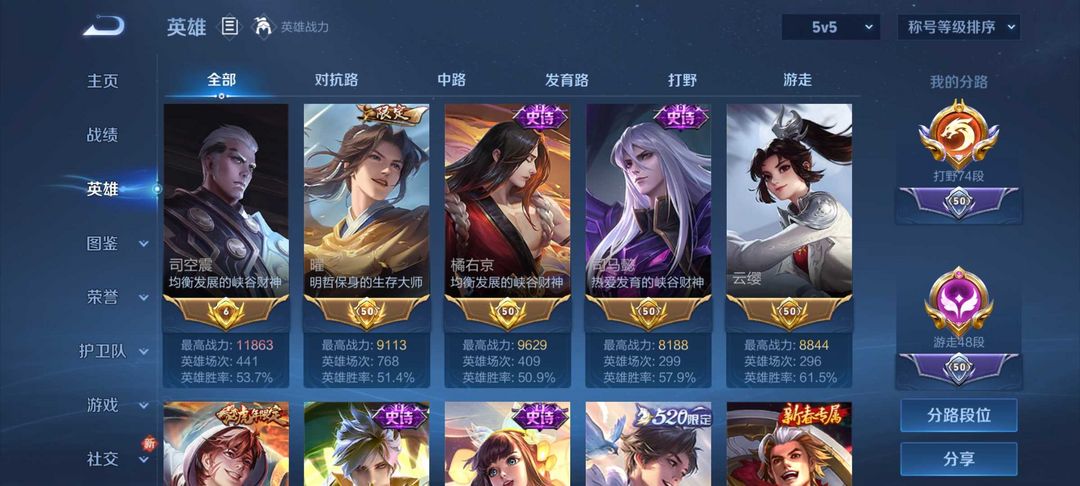 74段打野5小国标韩信玄策雅典娜廉颇刘禅328皮24传说2典藏