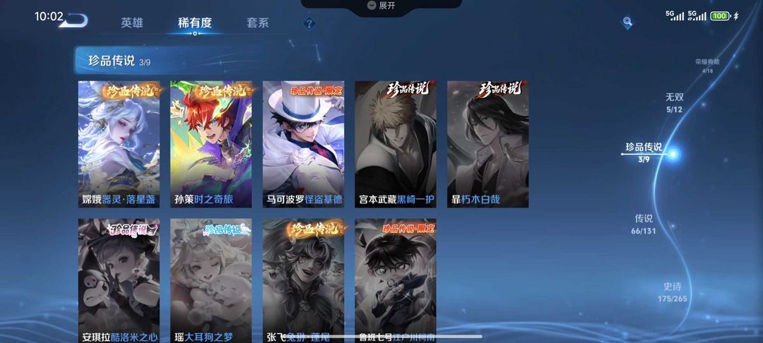 50段发育 天机白泽诡秘之主全套怪盗基德✨七十款传说皮肤五个典藏五无双三珍品50按键五星传说