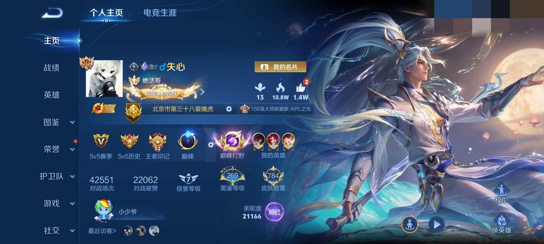 荣耀v10不禁言❤️784皮❤在榜省老虎省镜❤️历史大李白澜凯玄策小国老虎镜打野74段❤4小兵