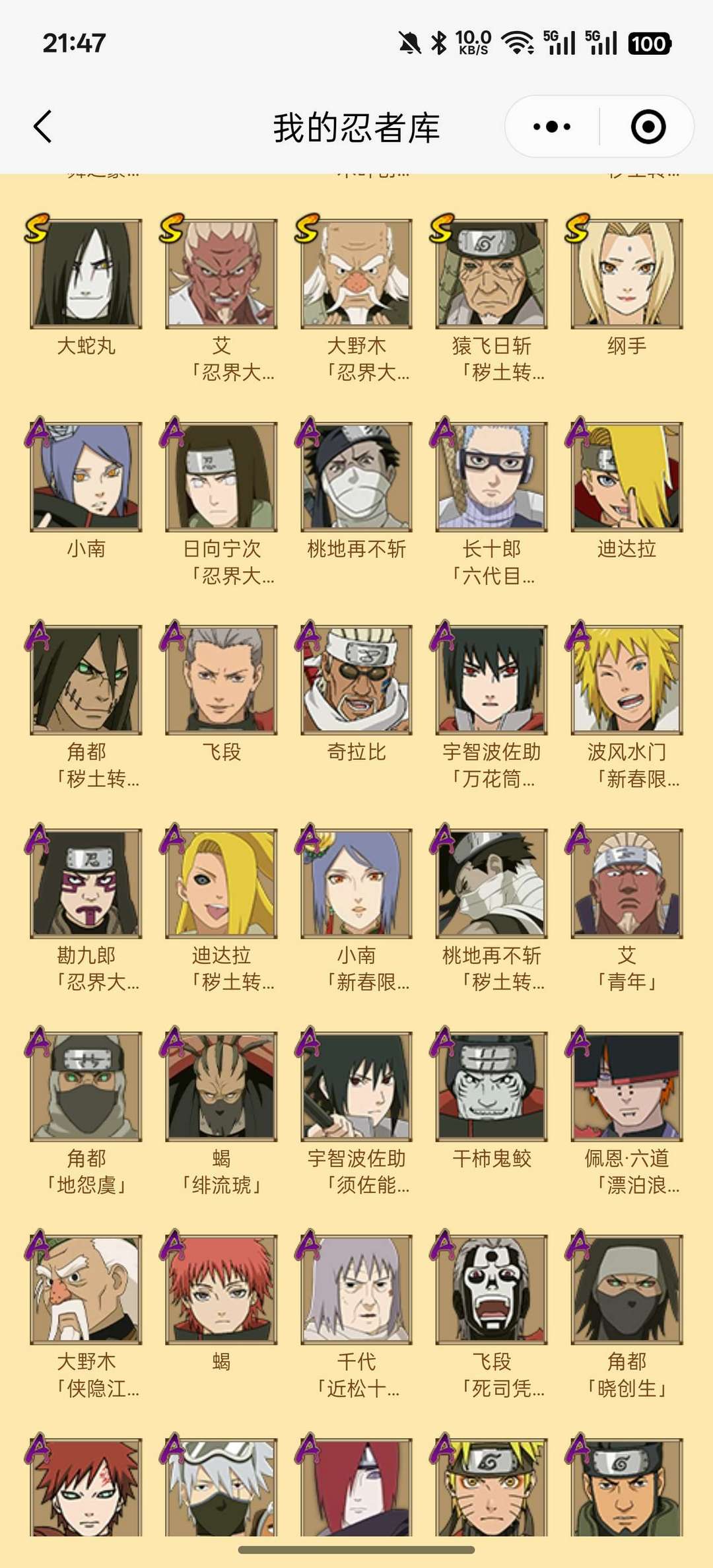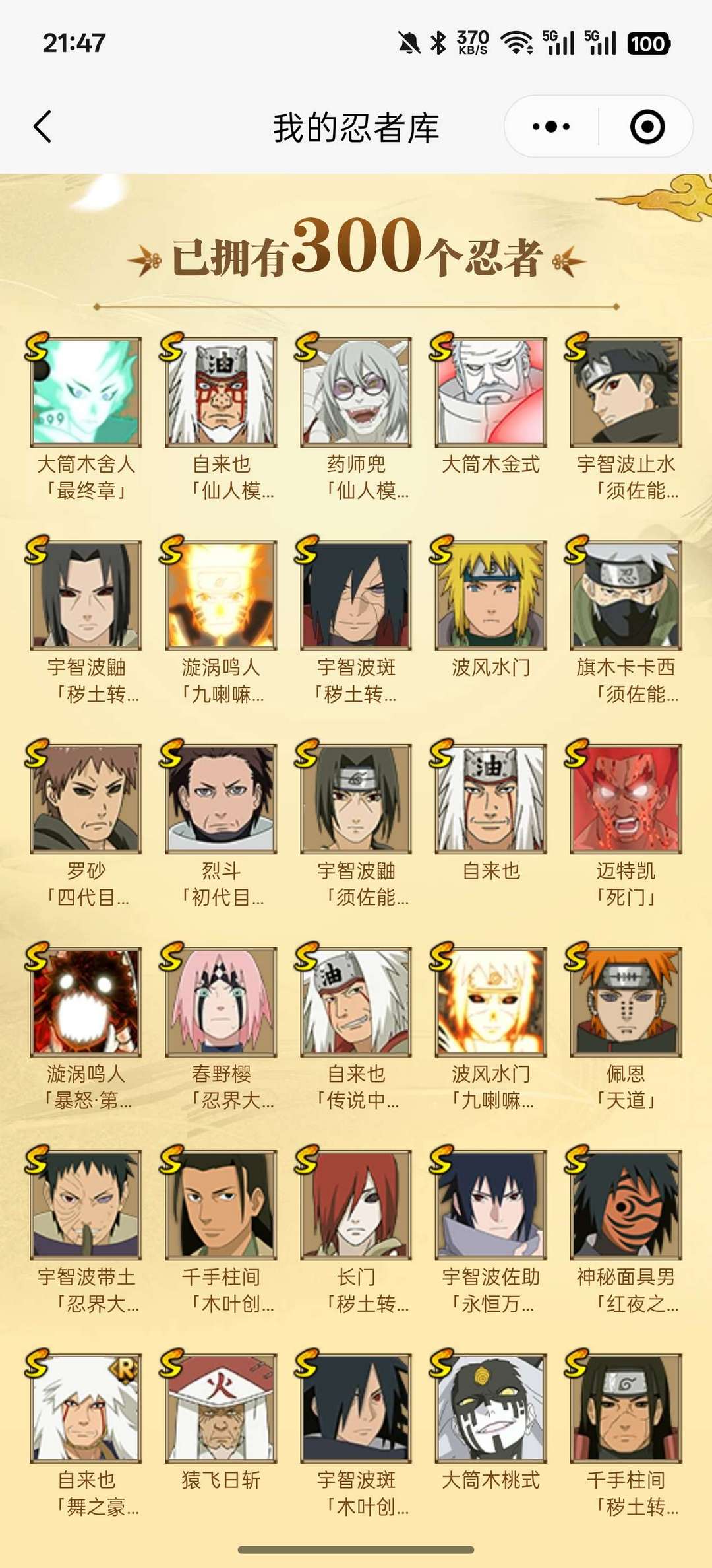 35s,59a,300忍者,2100w战力,忍战带土,漂泊带土,秽土三代,九尾水门