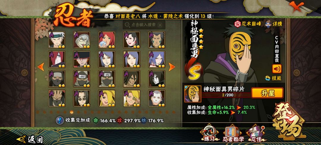 秽土斑☆暴怒六尾鸣人☆超哥☆三代目风影☆初代风影☆54个s忍☆2,600万☆164级