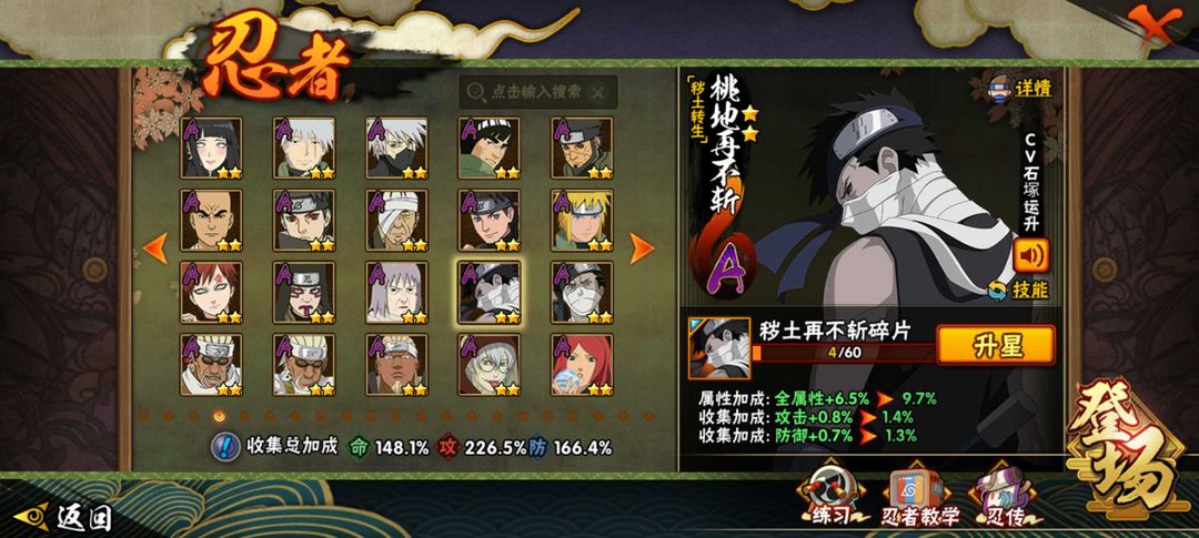 装备描述:漂泊佩恩✨忍战带土✨40S✨死门凯✨秽土柱间✨秽土斑✨白面具✨秽土水门✨九尾鸣人✨忍战小樱✨无✨金银角✨死三代✨虎皮✨秽土鼬✨半藏✨天道✨须佐佐助✨青年水门等等(详情可看图) 提示●游戏新机制:上号时上个租客还在线会直接显示在别处登陆,重新登录顶掉就行,我是不会恶意顶号的。