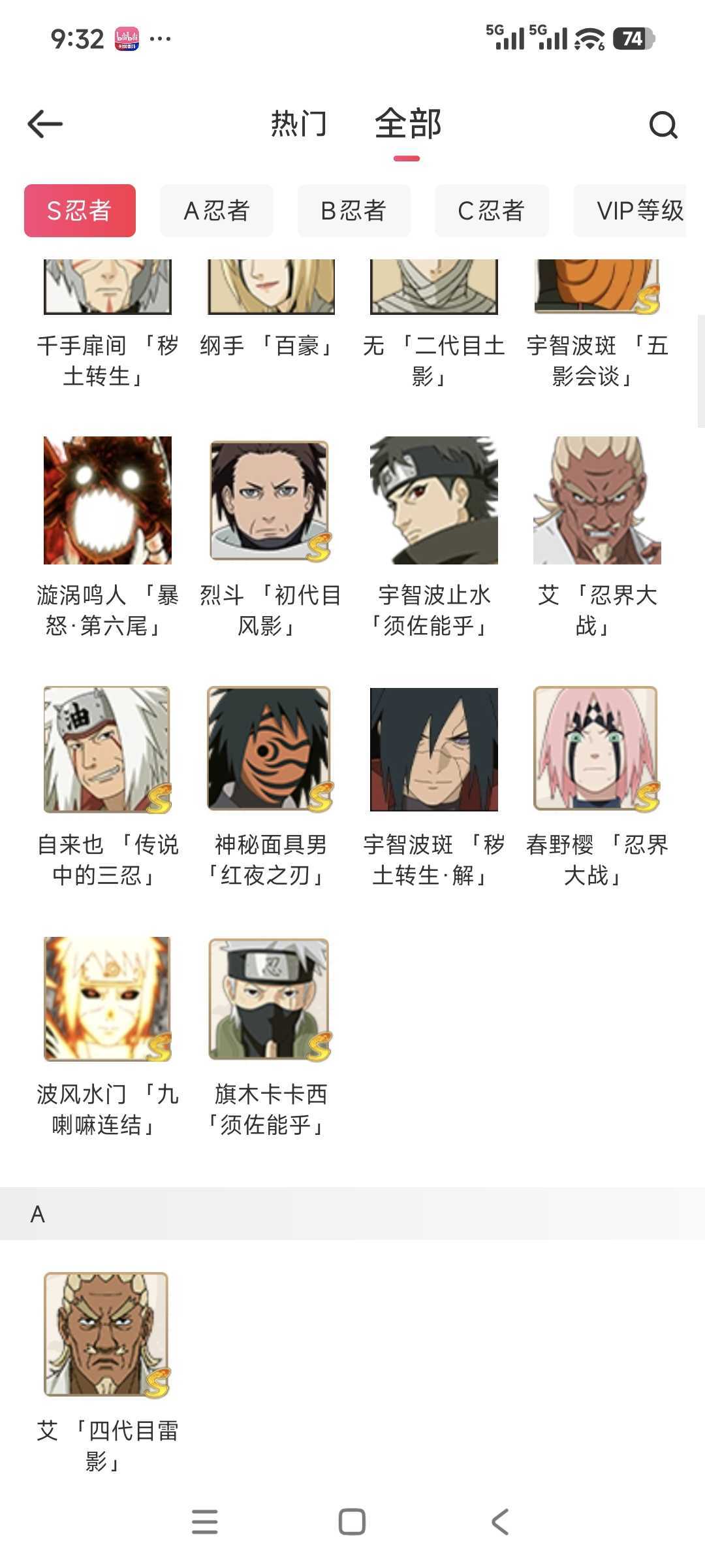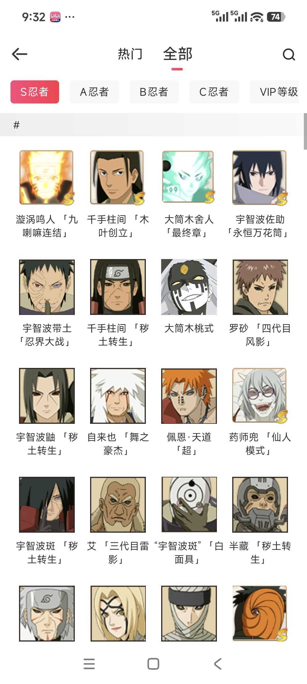 六尾鸣人50S❤️80A桃式舍人♥九喇嘛水门红夜面具♐忍战樱死门凯❤️忍战带土漂泊扉间秽土鼬