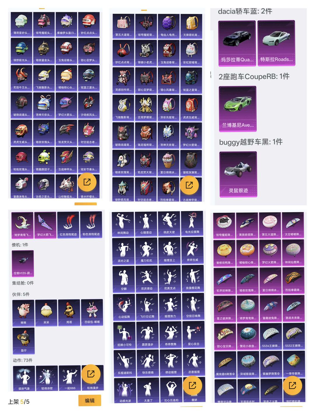 限制: 租号5次及以上 | 撤单率<49%才可租用此帐号装备描述:该号套装170个,粉套18个 枪皮215个,特效枪4个 载具皮肤4个 装备270个,三级头31个,三级包44个 滑翔尾迹4个,僚机1个,伙伴5个,动作73个,降落伞71个 祝您游戏愉快~请勿开挂请勿坐挂车~请勿分解枪皮等~谢谢合作~