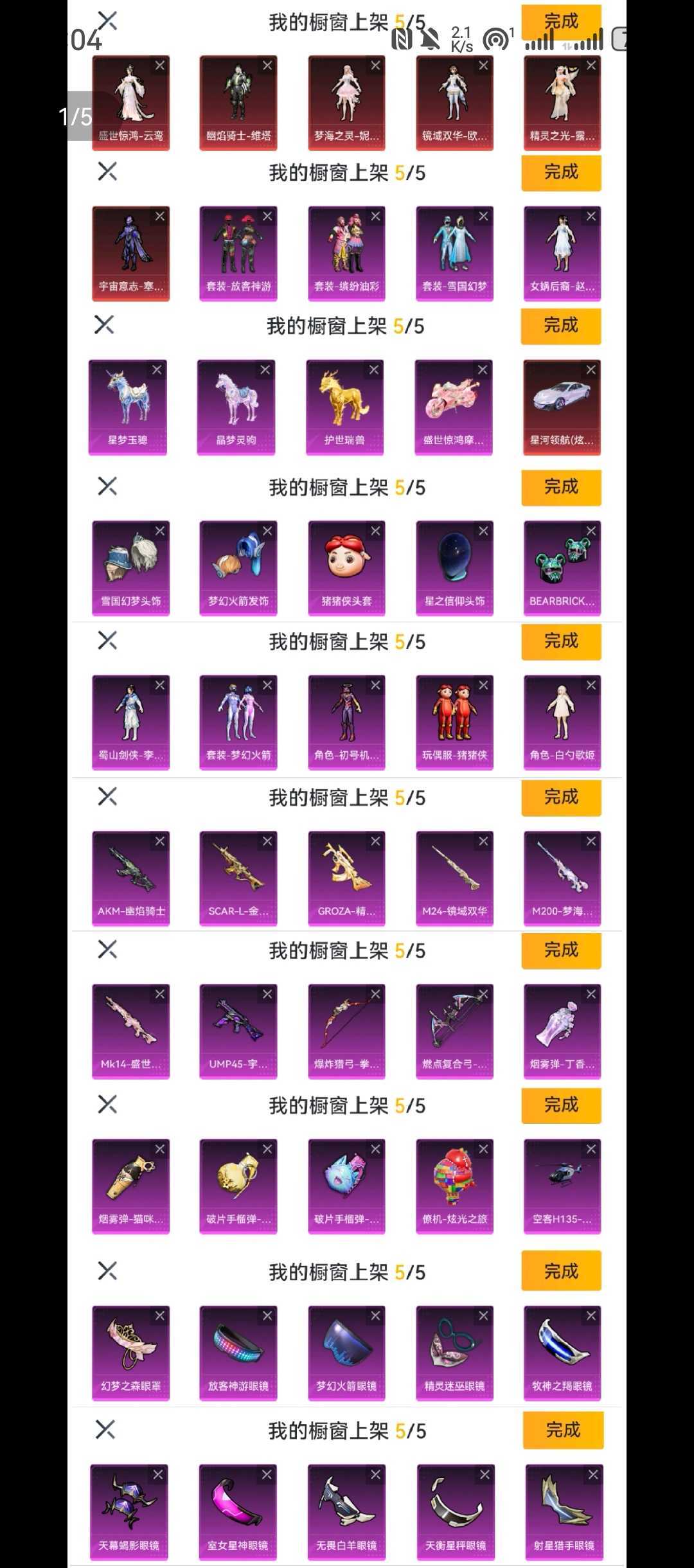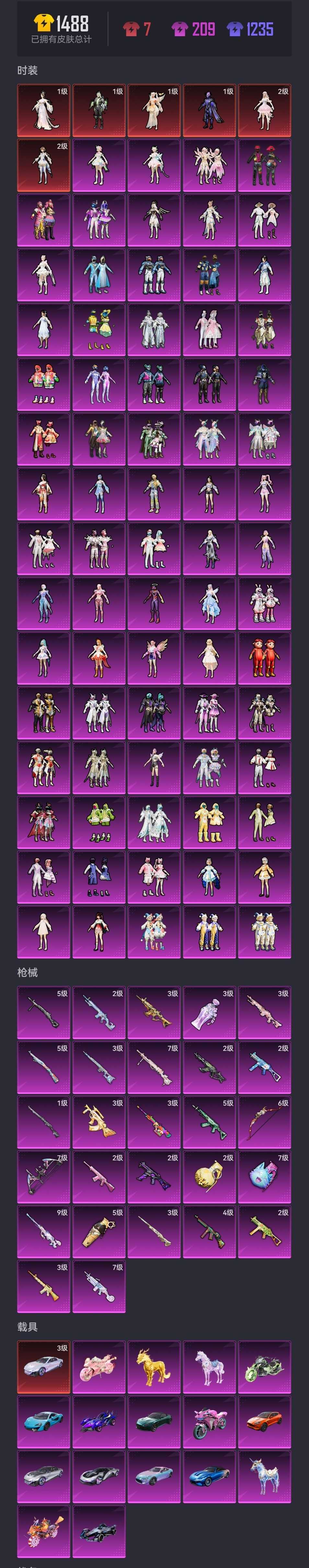 6红装/74粉/25枪/18车/满级M200/满级手雷/卤蛋/冰雪/放客/赵灵儿/火箭/觉醒螳螂